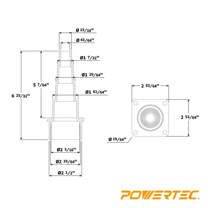 POWERTEC多功能轉接頭設計用於接受 Shop Vac、吸塵器和木工電動工具的各種開口尺寸。