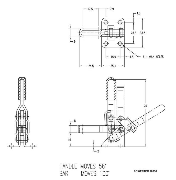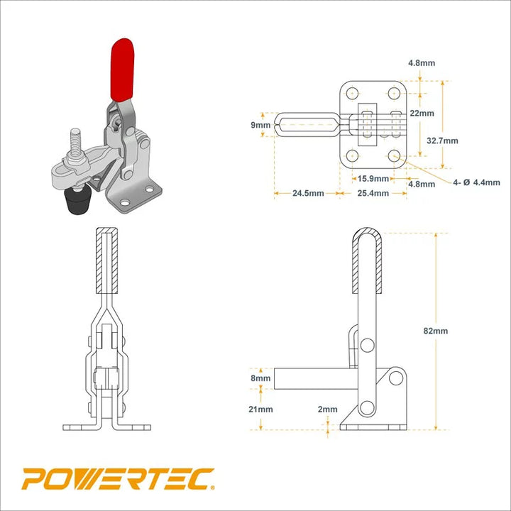 美國 POWERTEC 20330 垂直式肘節鉗 110磅 4入組
