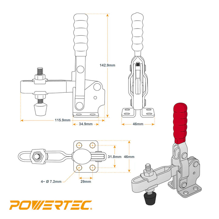 美國 POWERTEC 20335 垂直式快速夾具 夾鉗 一組二入