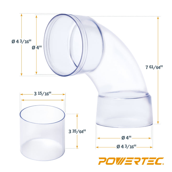 美國 POWERTEC 70309 4吋透明90度轉接管