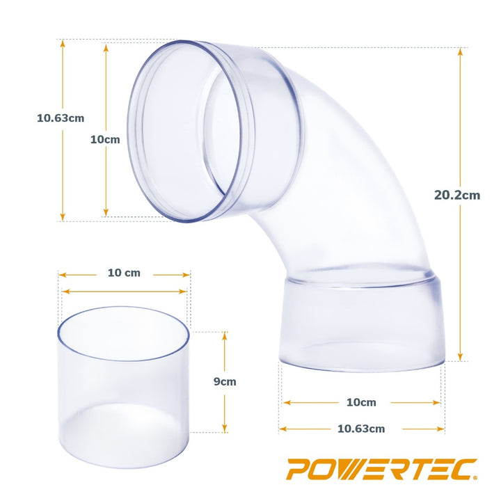 這款4英吋透明90度轉接彎管是一個功能強大的工具,適用於4英吋集塵器配件。它提供氣密連接,並且能直接吸入木屑、灰塵和碎屑,確保工作坊環境乾淨、潔淨的空氣。這款透明肘式轉接管 使集塵系統更高效便捷,提供卓越的清潔效果。