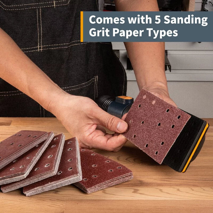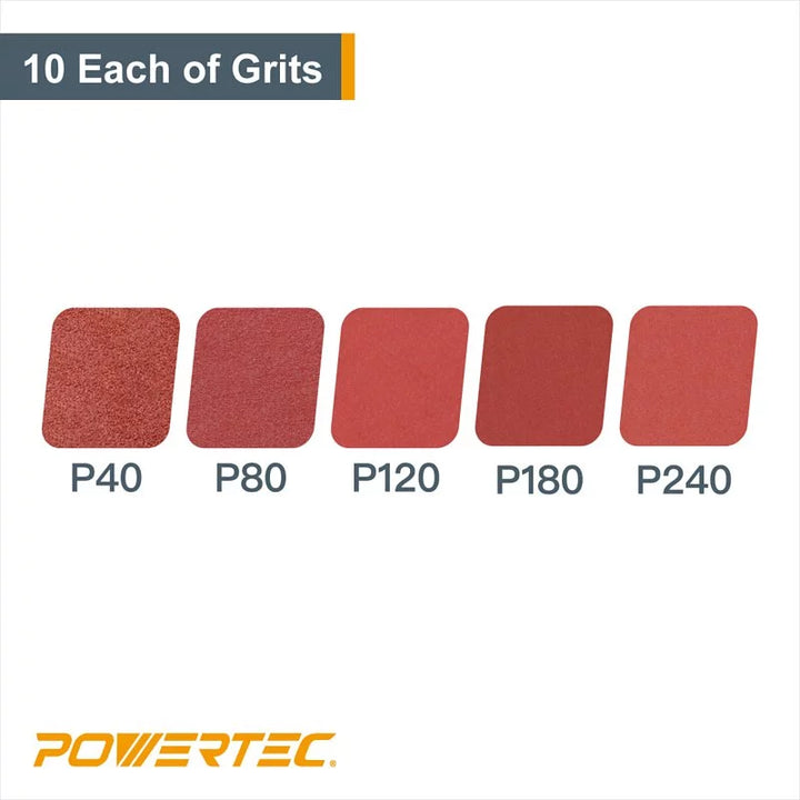 6. 附5組粒度數砂紙,每款10張共50張可應用各種手工打磨表面,包括:乾牆、硬木、有色金屬、塑膠和彩繪表面。