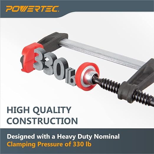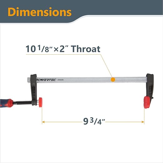 美國POWERTEC 碳鋼鑄造 木工夾 10-1/8'' 重型F型夾具,可夾持範圍x喉深約 250mm x 50mm , 適用於木工,焊接和各種通用應用。其獨特的設計提供了快速簡便夾緊效果。夾緊表面較廣外,另具有可調節的臂,該臂可上下移動而無需拉桿。這為您提供了最佳的控制和可操作性。
