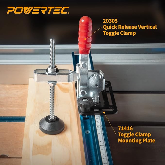 - 相容:6 英吋(約 15.2 公分)螺柱長度可搭配各種快速夾(檢查相容性規格),並使用 POWERTEC 71700 和 71416 安裝板安裝到 T 型軌道,提升您的工房設置。