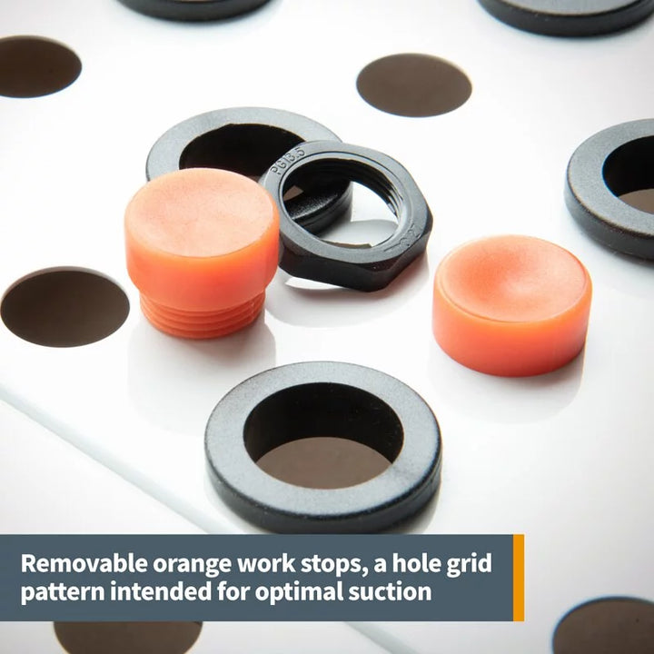 ●表面橡膠墊圈防滑,以及移動式的橡膠定位塊,可用於支撐、保護及穩定工件