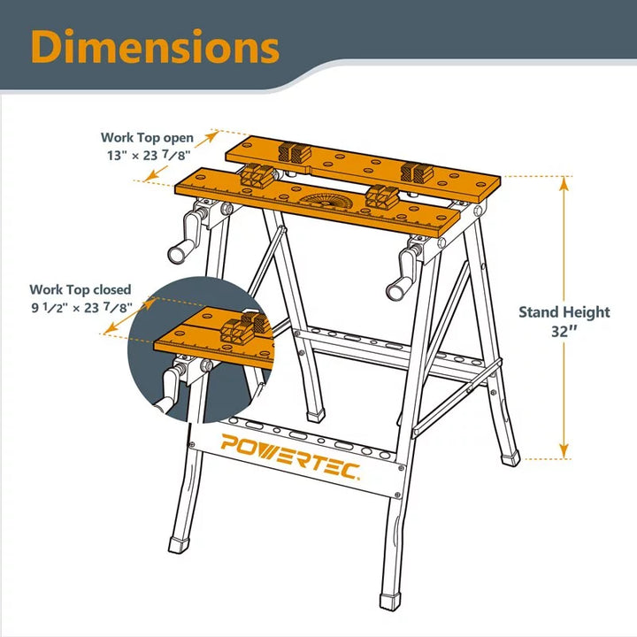 美國POWERTEC多功能木工工作台可折疊方便攜帶,重量輕巧,鋼製邊框材面為竹質具堅硬且可拉伸強度,且抗彎曲、抗膨脹又抗重壓。適用於各種木工項目, 為專業和家庭木工中首選的工作台。