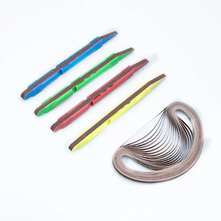 - 具有獨特的設計,讓砂紙帶保持牢固,可以像修正帶一樣輕輕轉動即可更新砂帶。
