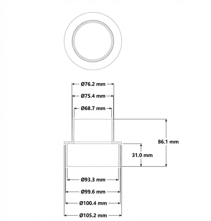 • 尺寸:4″ 外徑(約 Ø100mm)→ 3″ 外徑(約 Ø76mm)