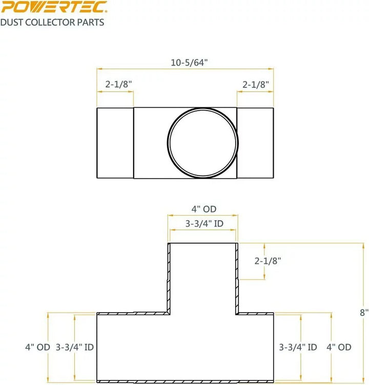 美國POWERTEC 70180 70107 T型轉接管4"/ 2-1/2"
