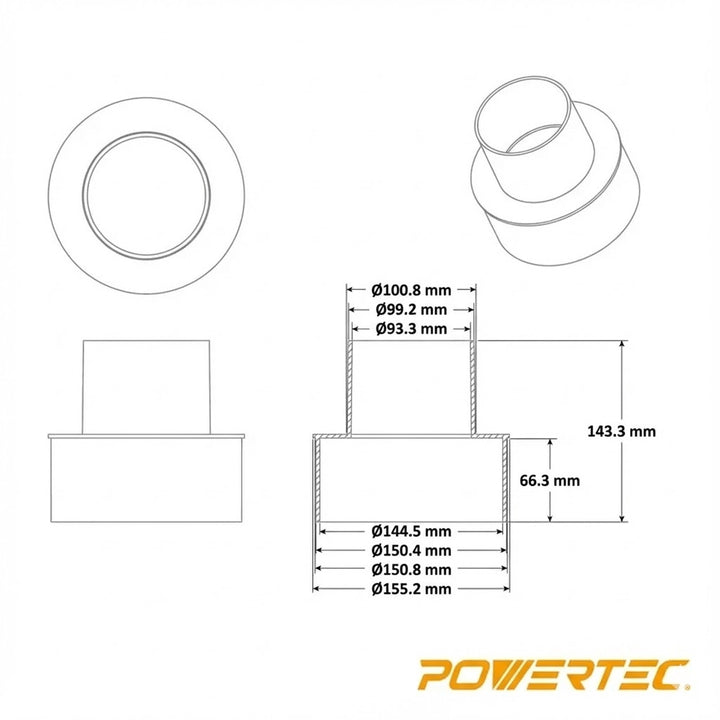 POWERTEC 702776" 4" 集塵系統縮口轉接頭