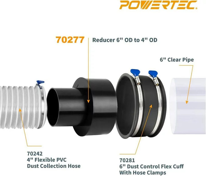 美國POWERTEC 70277 集塵轉接縮管系列 6吋轉4吋
