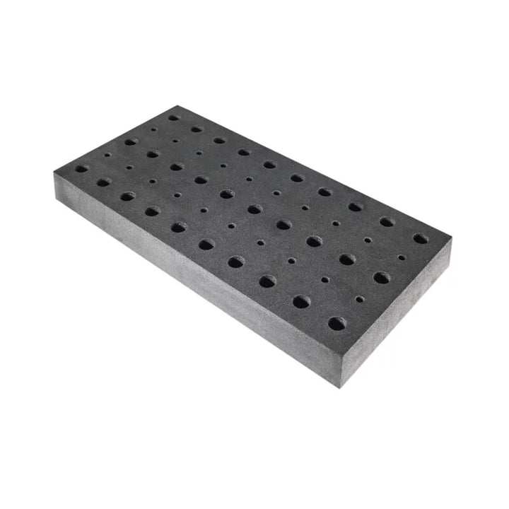 • 含有50個收納孔,由高密度泡棉製成,讓直徑稍大的鑽頭也一樣安穩的置放,不易受損。