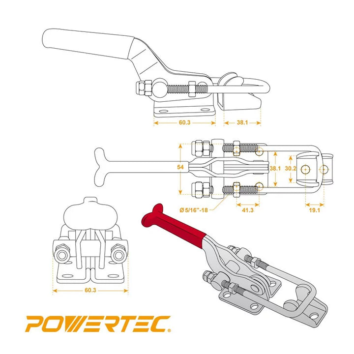 美國POWERTEC 20306 門閂式肘節鉗 夾持力 2000磅