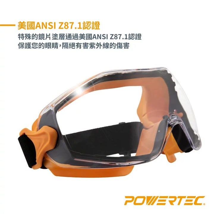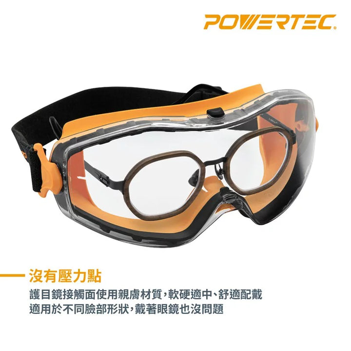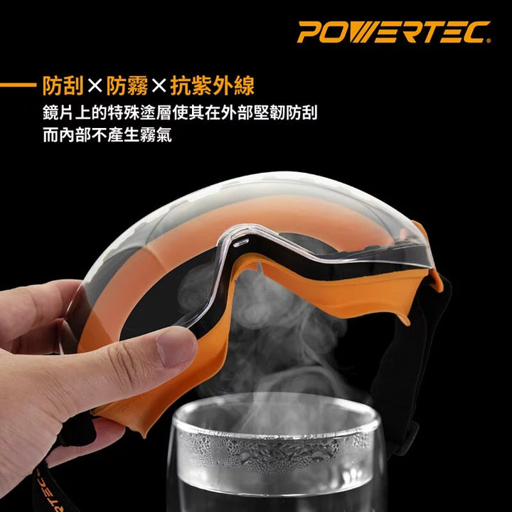 POWERTEC 71563 防霧 護目鏡|木工|抗UV 耐衝擊 可搭配14cm寬眼鏡