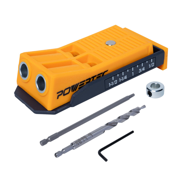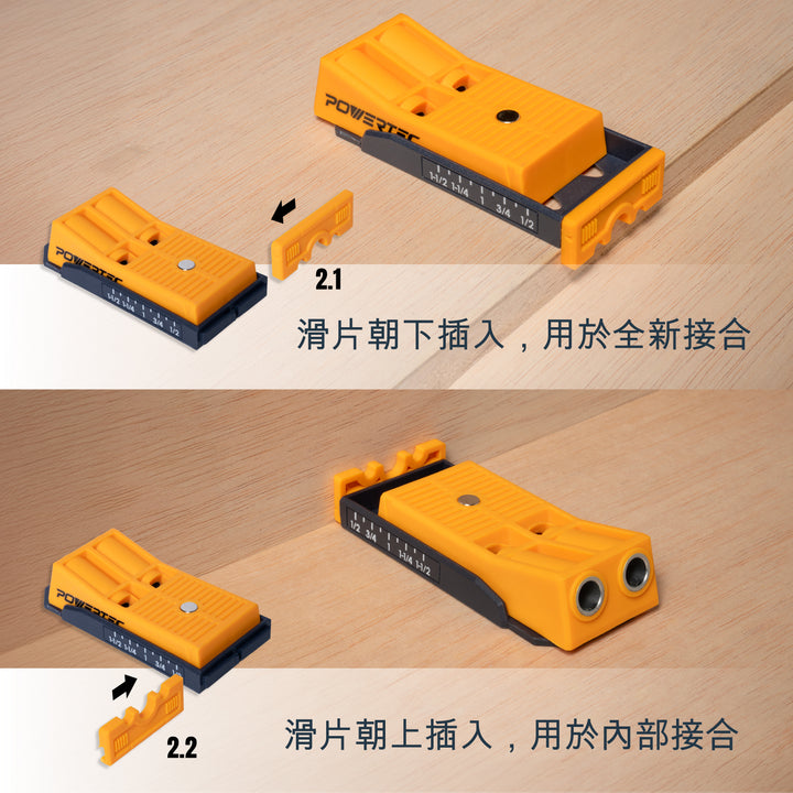 Powertec 72248 雙孔斜孔定位器套件|木工接合工具 適用13–38mm木料