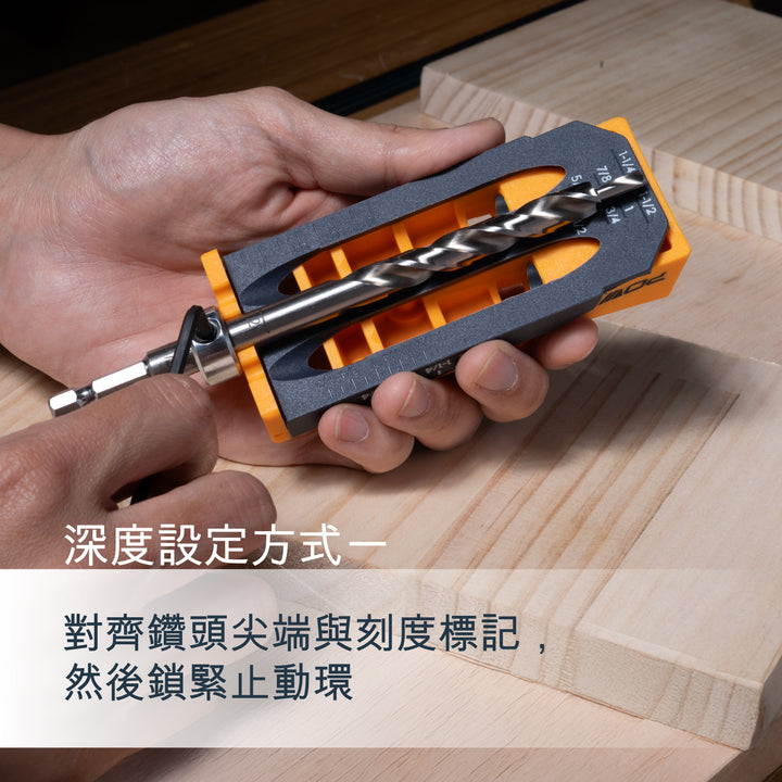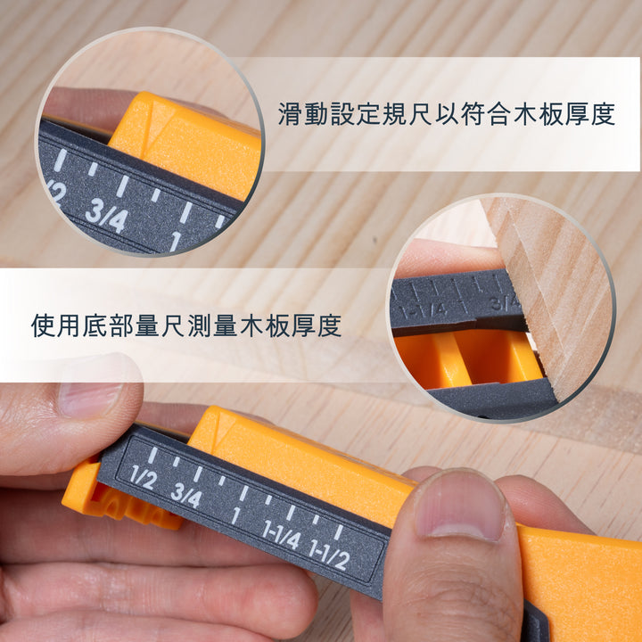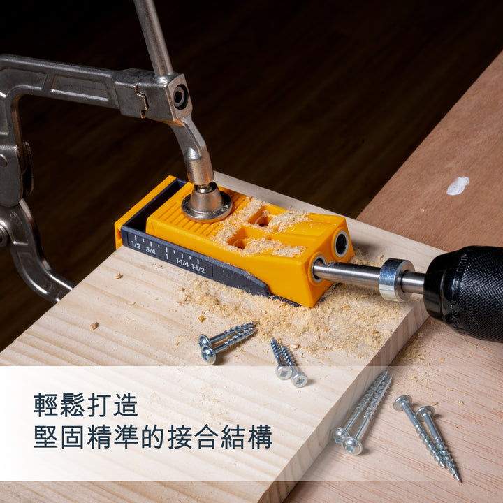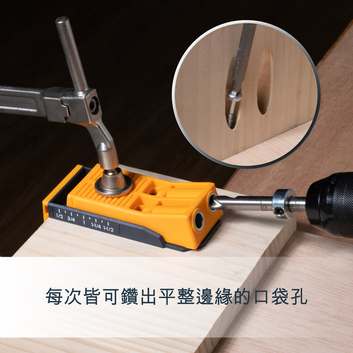 本產品採用雙孔定位設計,可同時鑽出兩個精準對稱的斜孔,大幅提升作業效率。磁性底座結構支援13mm~38mm木板厚度,搭配內建尺規與深度導引刻度,無需手動標記,快速定位不失誤。