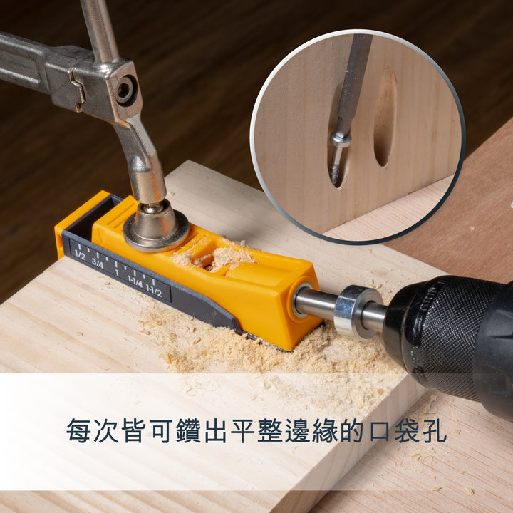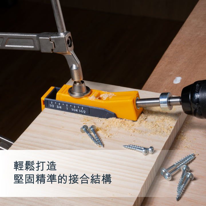 • 精準斜孔鑽孔:內建尺規與導引刻度,免標記、不出錯
