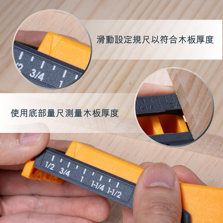 • 快速調整設計:磁吸底座支援13–38mm木板厚度,一鍵調整無須測量