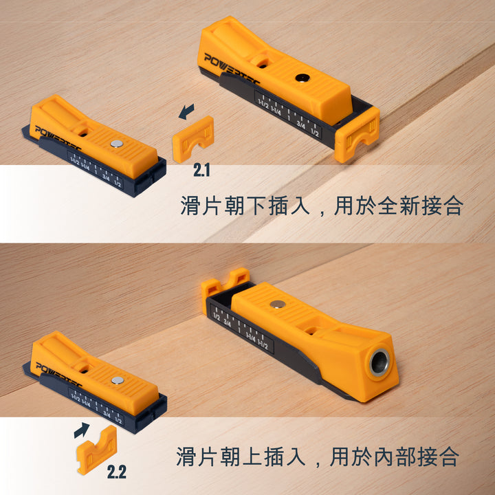 POWERTEC 72249 單孔斜孔定位器套件|木工鑽孔治具 適用13–38mm木料