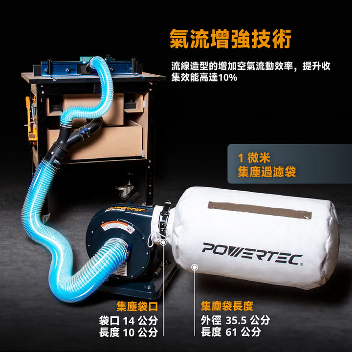 POWERTEC DC5372 木工集塵機 移動式 1HP集塵設備 內附集塵袋一組